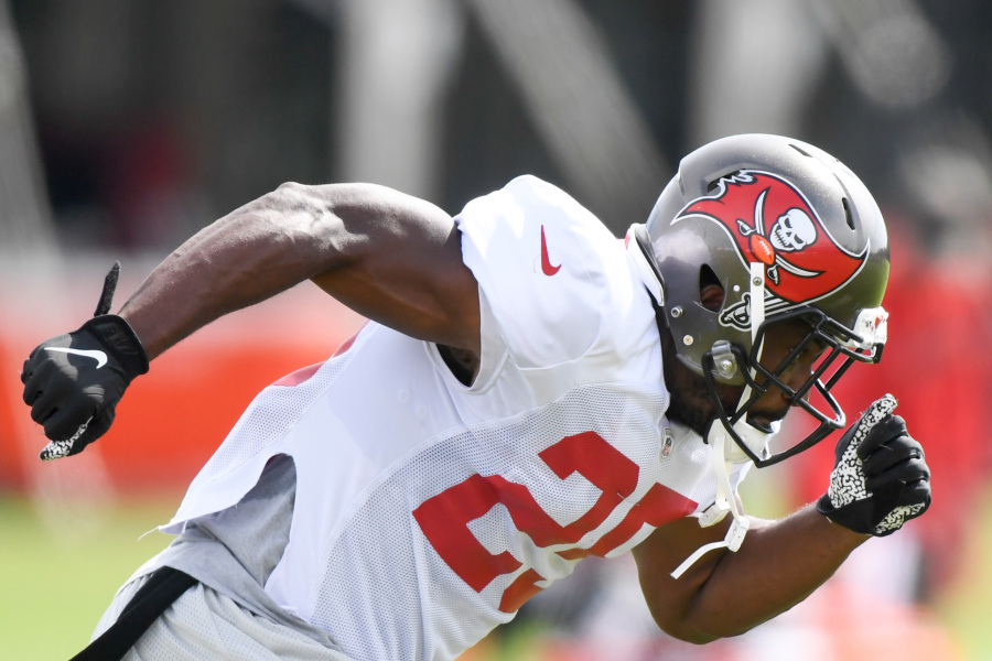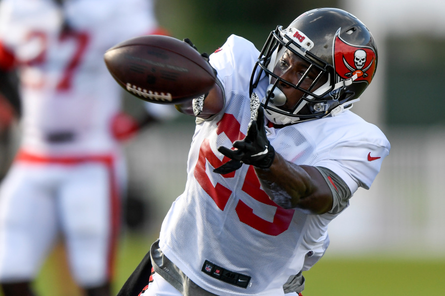 TAMPA, FLORIDA – AUGUST 20: LeSean McCoy #25 of the Tampa Bay Buccaneers catches the ball during training camp at AdventHealth Training Center on August 20, 2020 in Tampa, Florida. (Photo by Douglas P. DeFelice/Getty Images)